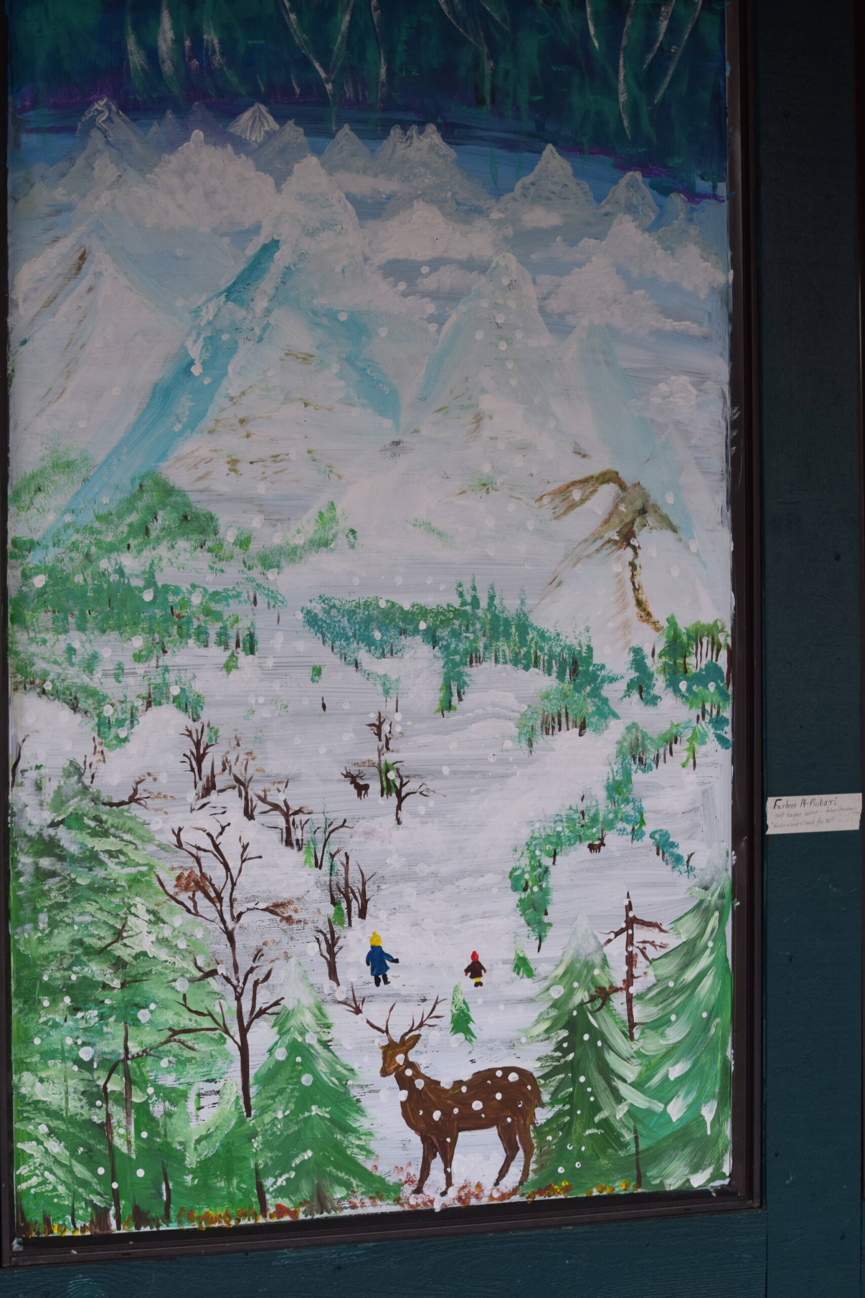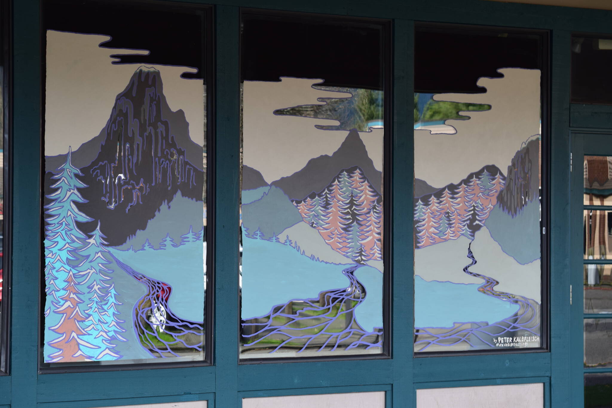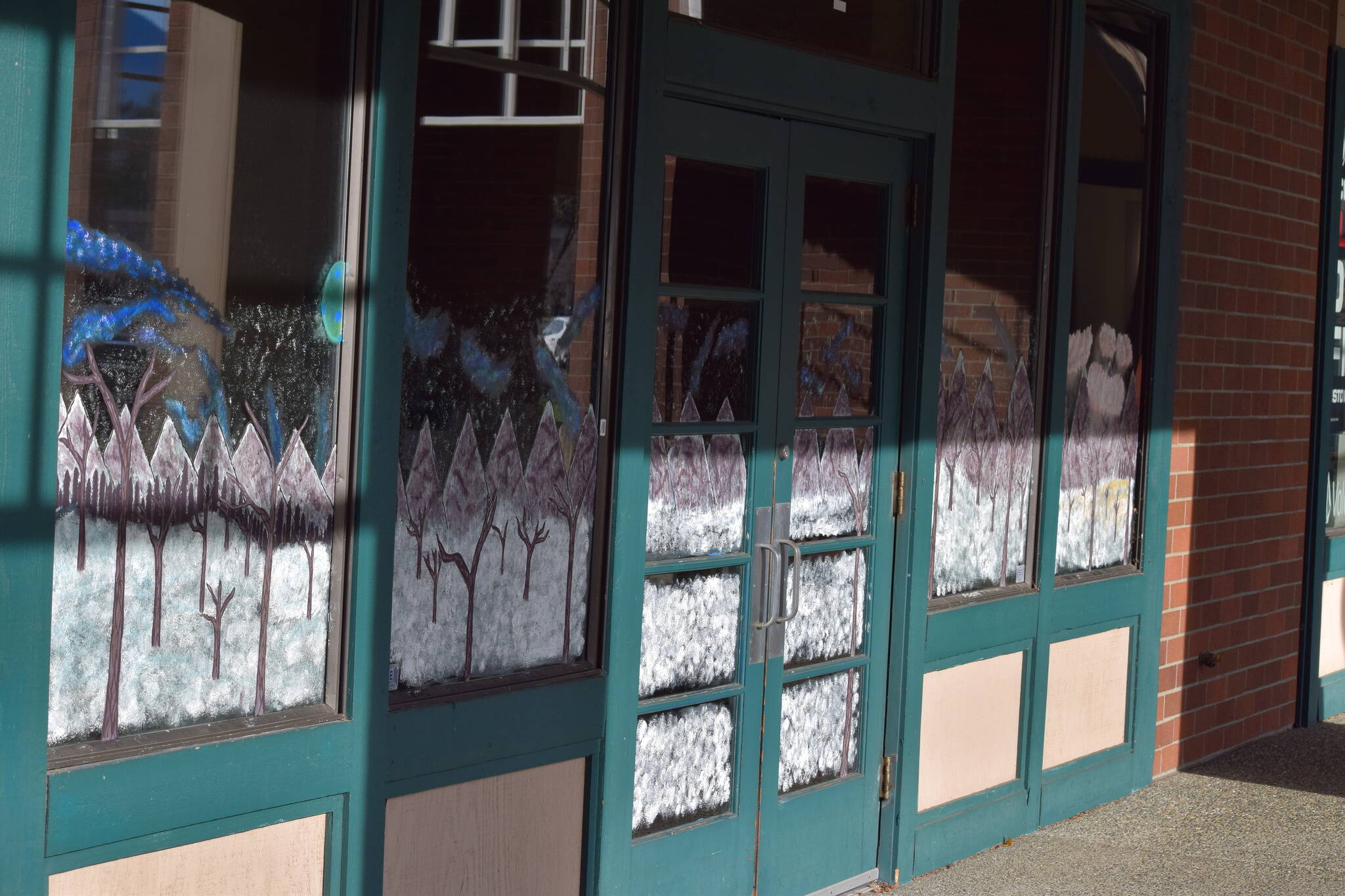 Four windows at the North Bend Premium Outlet Mall have been decorated with holiday-themed paintings. The artworks were done as part of the Holiday Window Painting Contest organized by North Bend Art & Industry, an arts nonprofit.