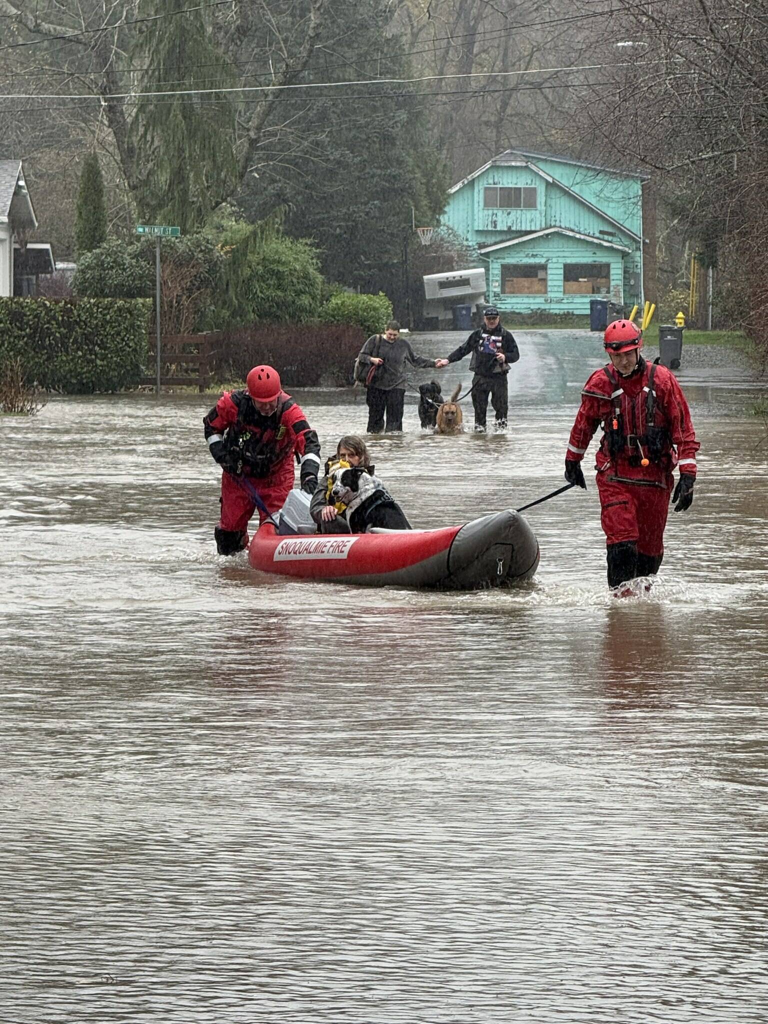 Snoqualmie firefighters rescue residents after their home flooded, Dec. 10, 2025. Photo courtesy of the city of Snoqualmie