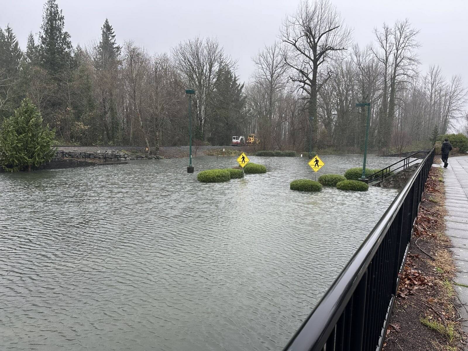 Flood waters fill the downtown North Bend Park & Ride. Photo courtesy of Keegan Campbell