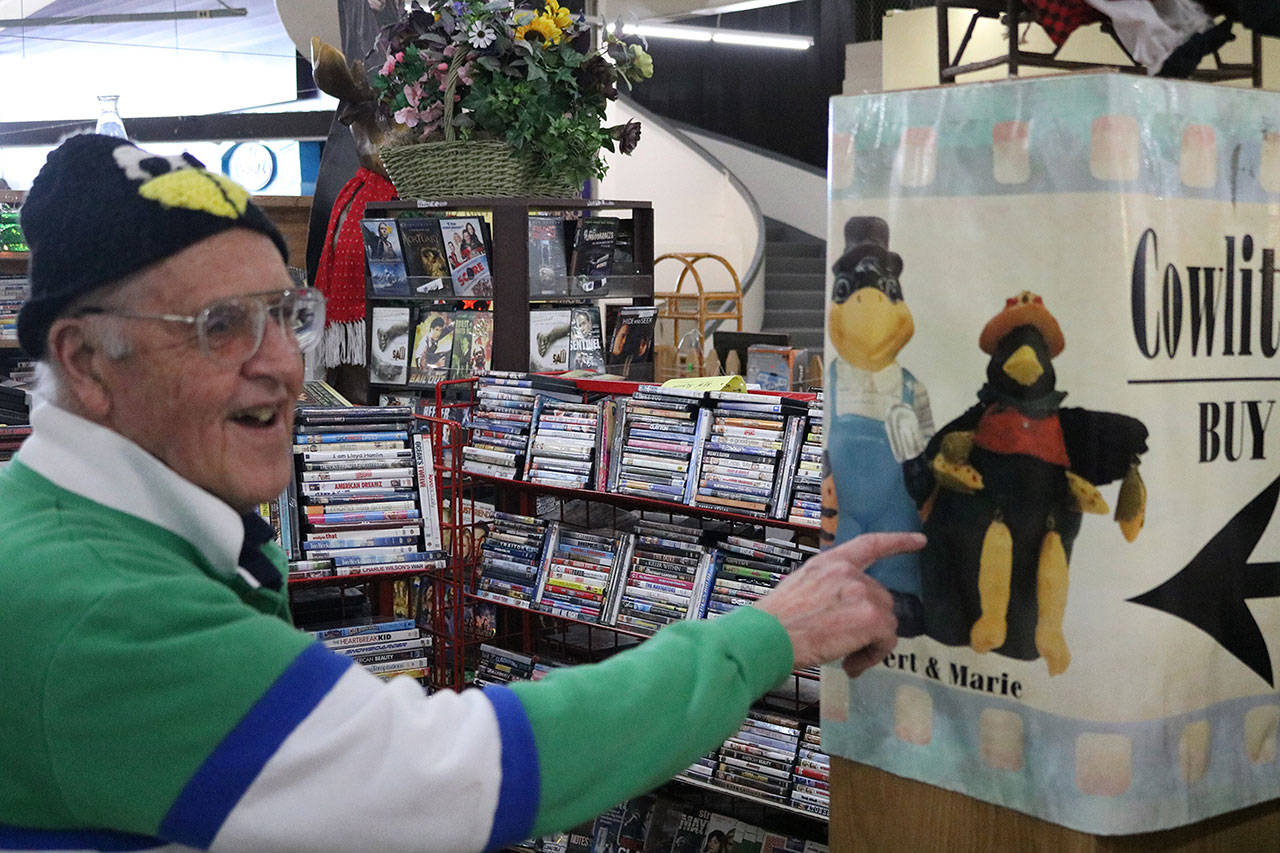 On a recent sunny Monday afternoon, 82-year-old Robert Oberg is sitting inside the Yard Birds Mall in Chehalis, overseeing his second-hand DVD shop in the indoor flea market.
