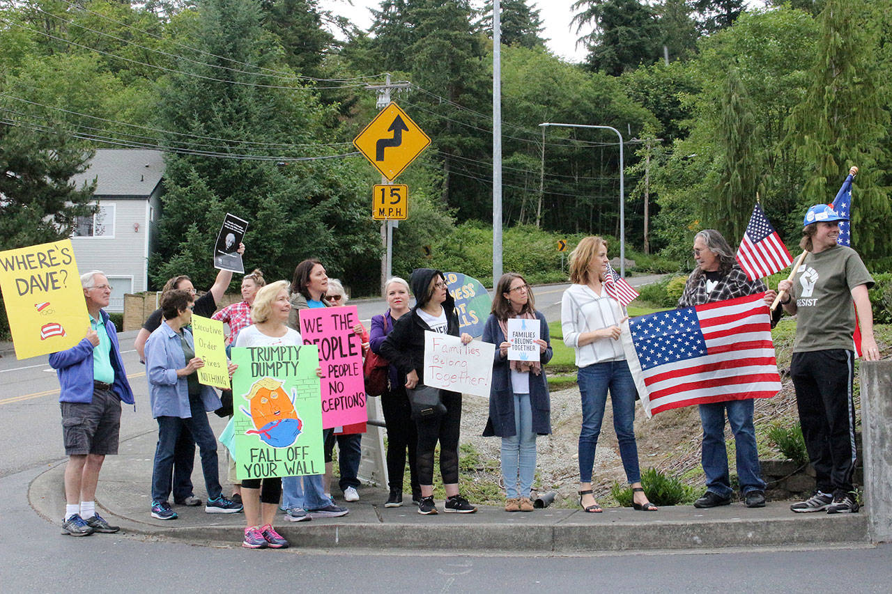 Lawyer Moms of America, a nonpartisan group, and Indivisible Washington’s Eighth District, one of thousands of volunteer-led local groups that engage in progressive advocacy and electoral work, gathered together in front of Rep. Dave Reichert’s office in Issaquah waving colorful signs and chanting, “Families belong together!” and “Children and families deserve to be together!”