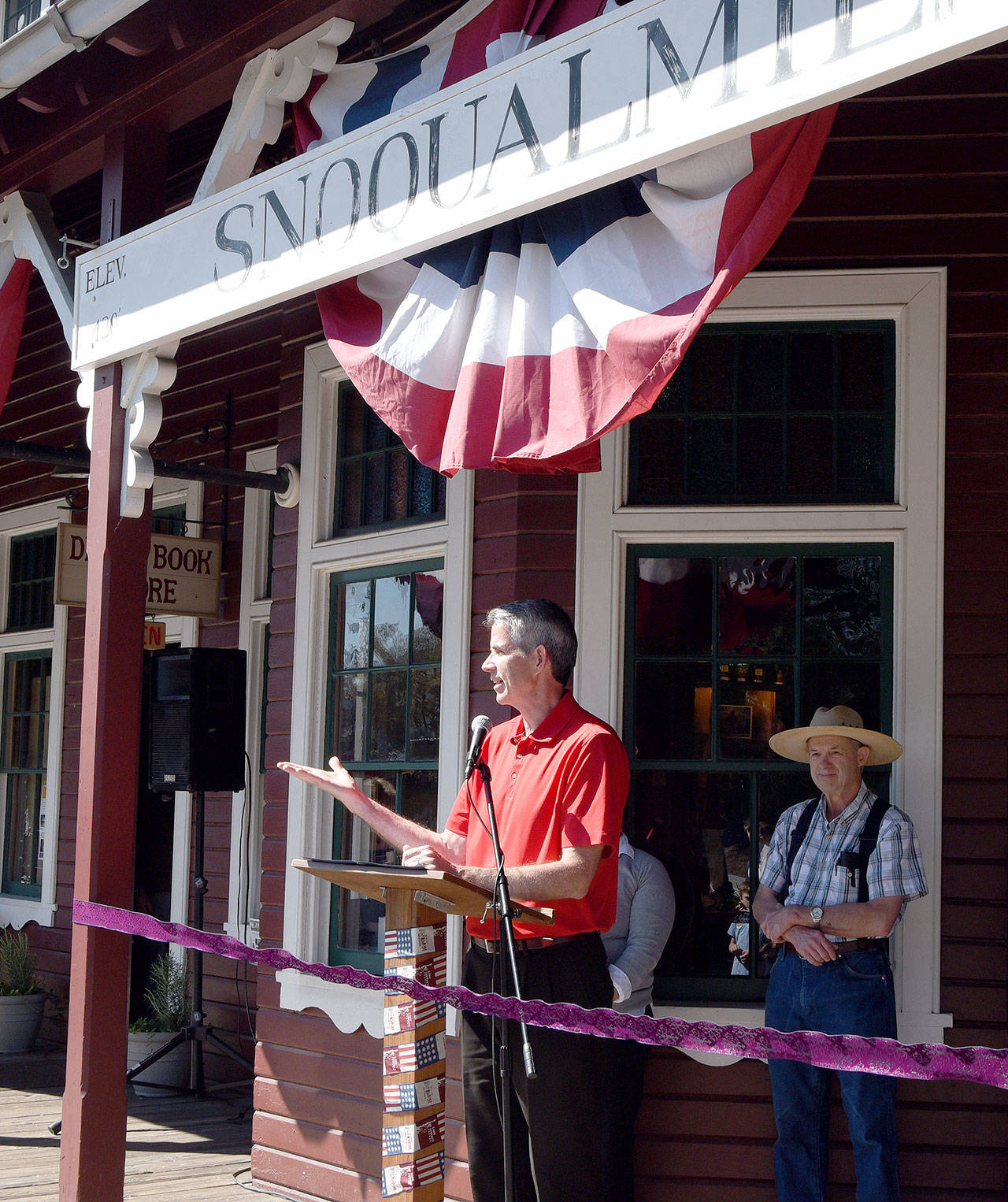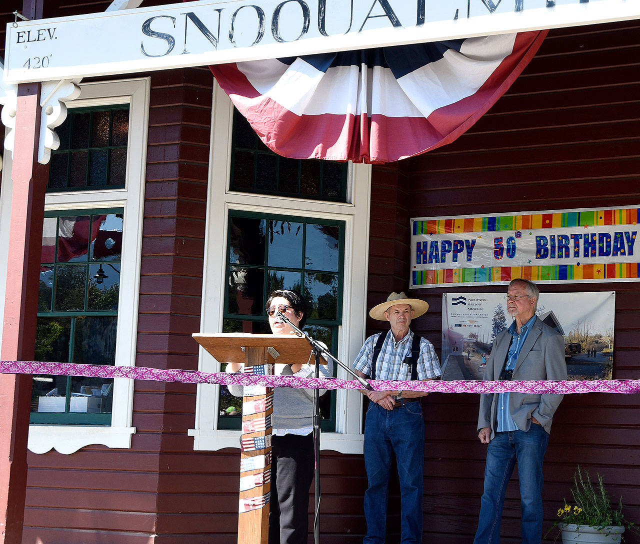 Before cutting the ribbon, Petitjean declared the day, like the one 50 years ago, “a red-letter day. A lot of water has passed over Snoqualmie Falls since that day, and the railroad museum has come a very long way. I think the community should be very proud of what has been accomplished in terms of preserving that history.”